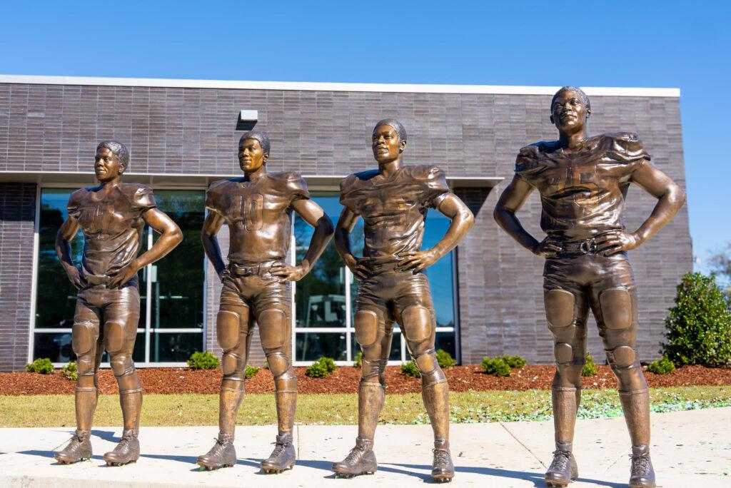 The statues were created by local artist and sculptor, Caleb O’Connor, who also created the Minerva statue at Manderson Landing as well as the Deontay Wilder statue found in front of the Visit Tuscaloosa Welcome Center.